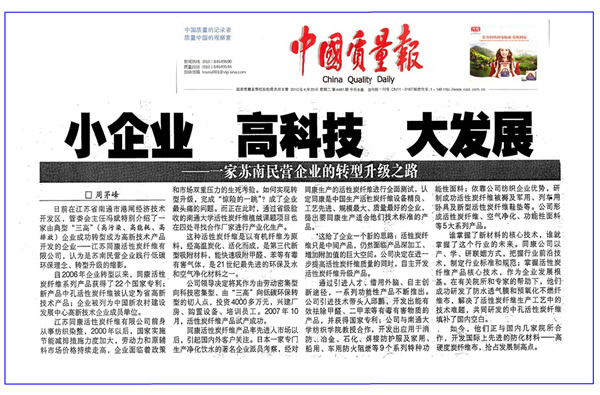 中國質(zhì)量報(bào)——小企業(yè)、高科技、大發(fā)展"一家蘇南民營企業(yè)的轉(zhuǎn)型升級(jí)路"